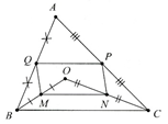 Cho tam giác ABC. Gọi O là một điểm thuộc miền trong của tam giác. M, N, P, Q lần lượt là trung điểm của các đoạn thẳng OB, OC, AC, AB.